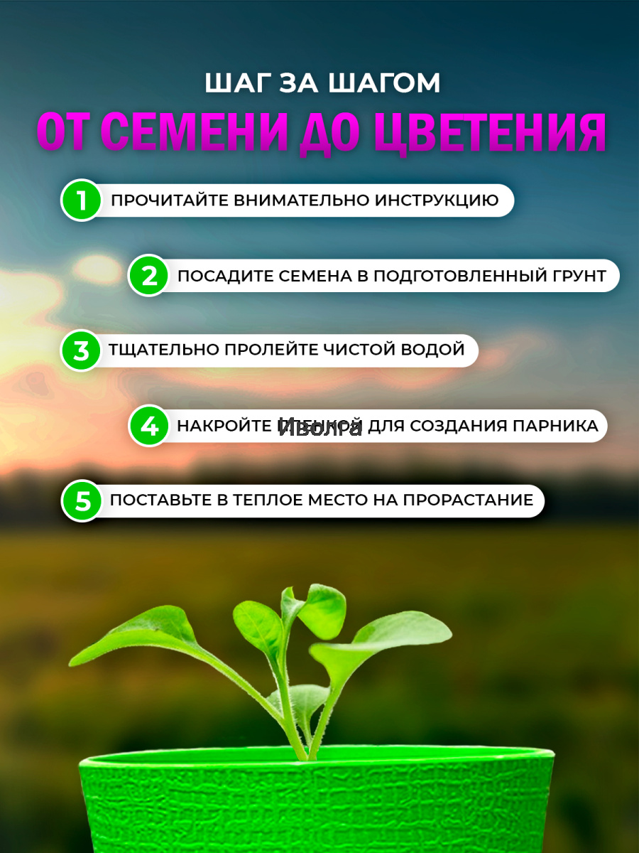 В наборе есть все необходимое, чтобы успешно вырастить растение: семена для посадки, питательный грунт, стильное пластиковое кашпо и инструкцию с советами для начинающих садоводов.